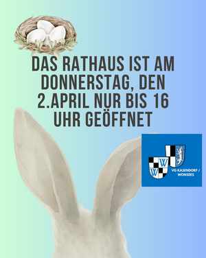 Verwaltung Kasendorf: Rathaus am Gründonnerstag bereits ab 16 Uhr geschlossen